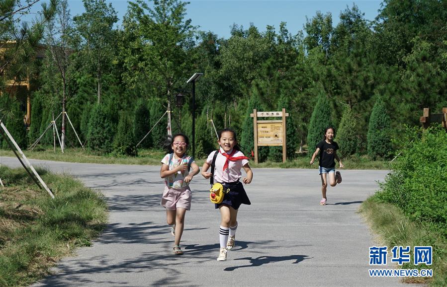 小學生們在千年秀林內(nèi)玩耍(8月29日攝)。新華社記者牟宇攝
