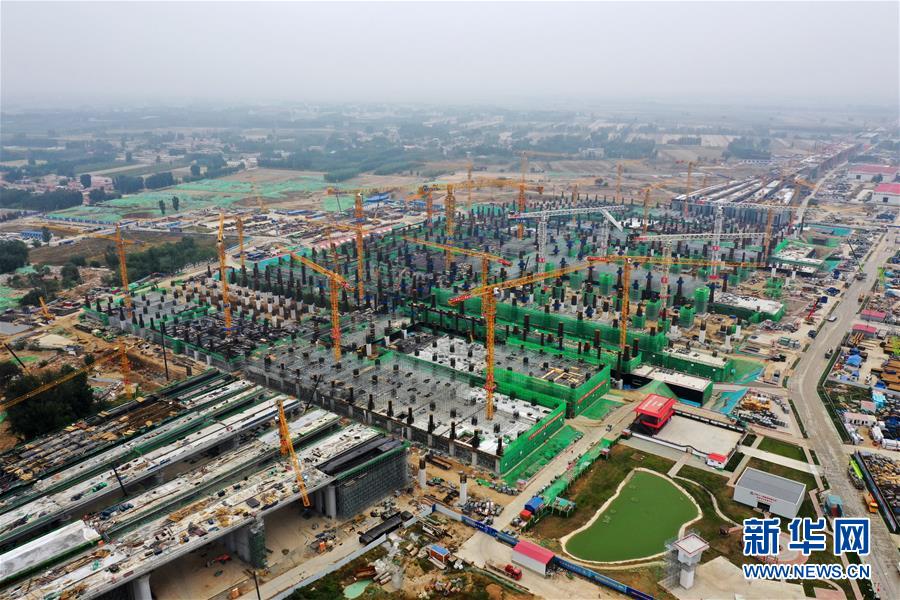 建設(shè)中的雄安站(10月10日無人機拍攝)。