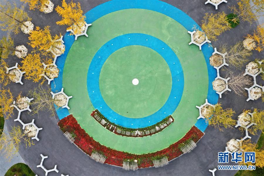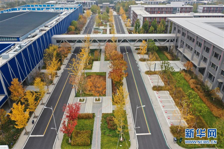 11月6日拍攝的雄安新區(qū)市民服務中心(無人機拍攝)。深秋時節(jié)的雄安新區(qū)色彩斑斕,景色宜人。新華社記者邢廣利攝