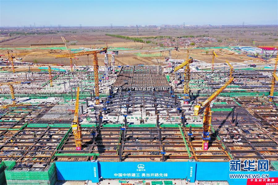 這是3月25日拍攝的京雄城際鐵路雄安站施工現(xiàn)場。新華社記者牟宇攝
