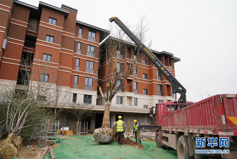 工人在雄安高質(zhì)量建設(shè)實驗區(qū)(生活)項目建設(shè)現(xiàn)場吊裝樹木(3月26日攝)。新華社記者楊世堯攝
