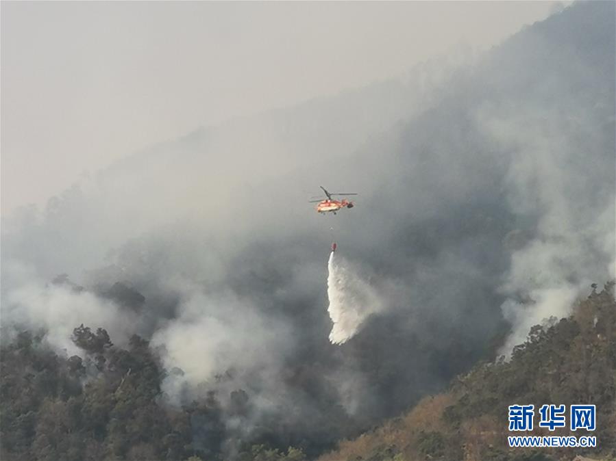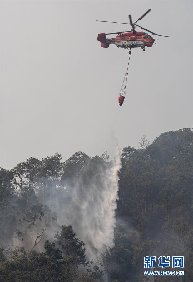 4月1日,一架卡-32大型直升機在西昌森林火災(zāi)現(xiàn)場撲火。新華社記者江宏景攝