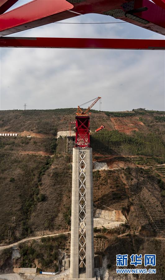 中老鐵路元江特大橋“邁”過第一高墩
