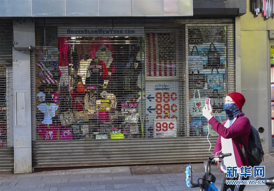 3月21日,在美國紐約時(shí)報(bào)廣場(chǎng),一家紀(jì)念品商店關(guān)閉。新華社記者王迎攝