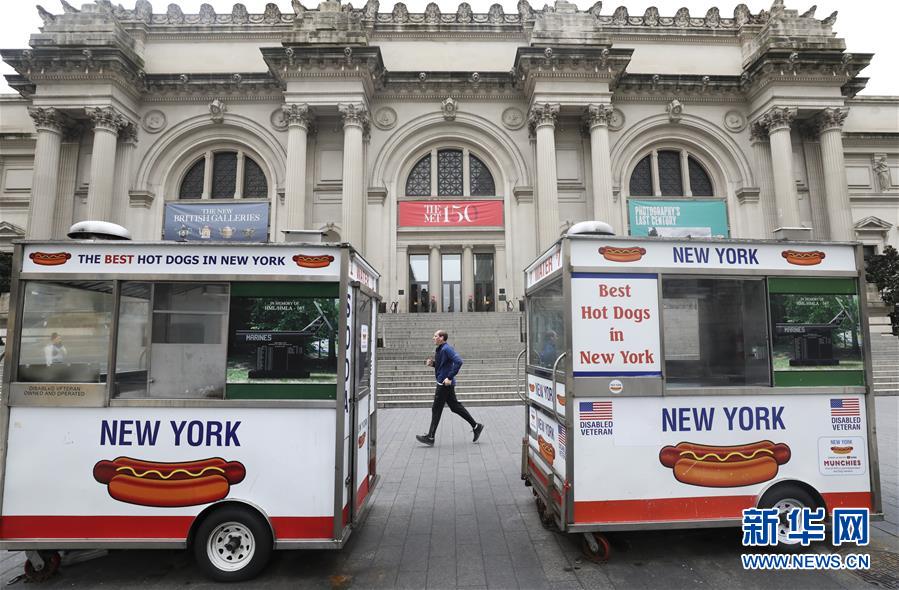 3月19日,在美國紐約曼哈頓,一名男子跑步經(jīng)過因新冠疫情而暫時(shí)閉館的大都會(huì)博物館。新華社記者王迎攝