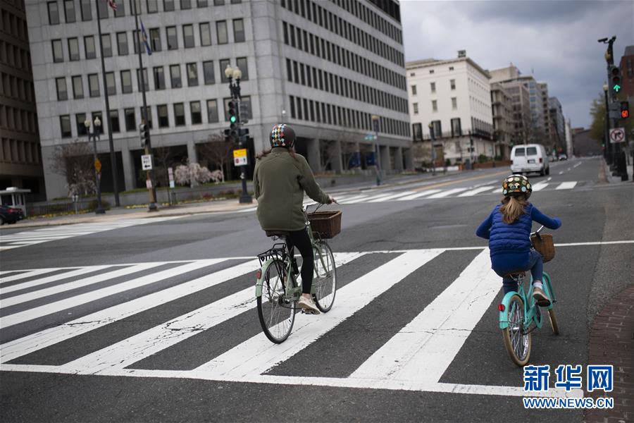 4月8日,在美國首都華盛頓,市民在空曠的街道上騎行。美國約翰斯·霍普金斯大學(xué)8日發(fā)布的新冠疫情最新統(tǒng)計(jì)數(shù)據(jù)顯示,美國確診病例超過40萬例。美國目前是全球確診病例最多的國家。數(shù)據(jù)顯示,截至美國東部時(shí)間8日12時(shí)30分(北京時(shí)間9日0時(shí)30分),美國新冠確診病例升至401166例,死亡12936例。新華社記者劉杰攝