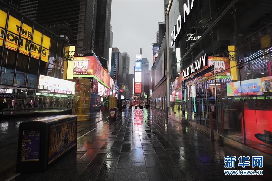 這是3月23日下午拍攝的空蕩蕩的紐約時(shí)報(bào)廣場(chǎng)。新華社記者王迎攝