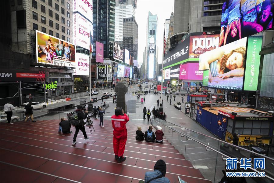 3月19日,人們在冷清的美國紐約曼哈頓時報廣場上參觀。美國約翰斯·霍普金斯大學(xué)發(fā)布的實時統(tǒng)計數(shù)據(jù)顯示,截至美國東部時間19日17時30分(北京時間20日5時30分),美國新冠肺炎確診病例累計13060例,死亡175例。受新冠肺炎疫情影響,紐約等疫情嚴重的地區(qū)執(zhí)行多項減少人口聚集的措施,昔日的鬧市如今已冷冷清清。新華社記者王迎攝