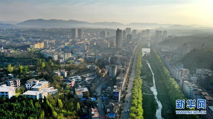 4月13日清晨時分拍攝的洛南縣城(無人機照片)。新華社記者陶明攝