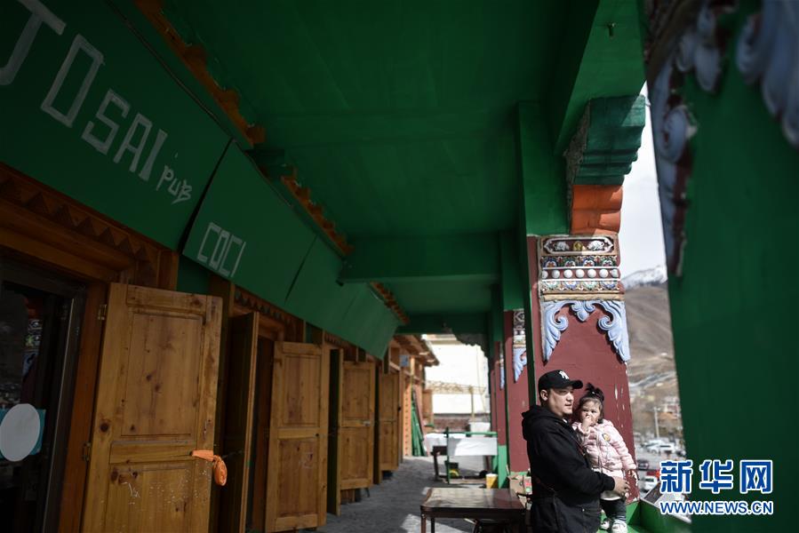 4月10日,才仁俄賽和女兒在餐廳門(mén)口。新華社記者張宏祥攝