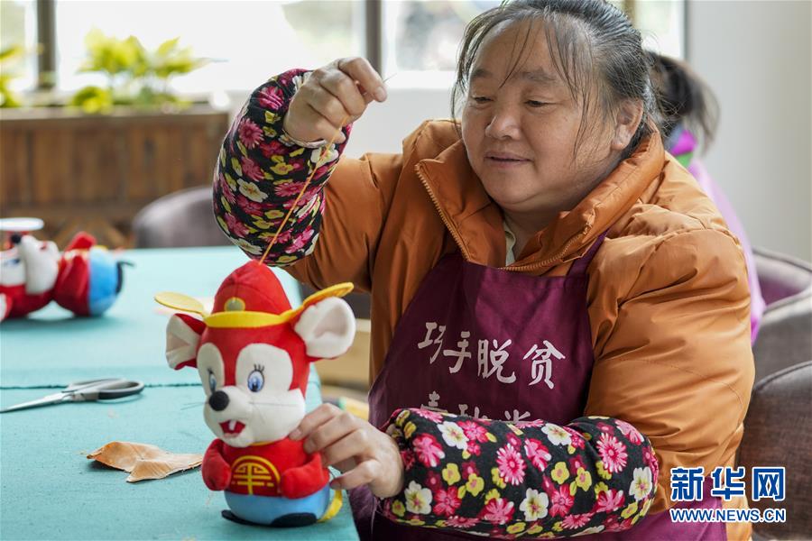 4月8日,在重慶石柱中益鄉(xiāng)巾幗扶貧工坊,一名當?shù)貗D女在縫制文創(chuàng)產(chǎn)品。近年來,重慶市石柱土家族自治縣中益鄉(xiāng)在重慶市婦聯(lián)的幫助下,以當?shù)胤沁z傳統(tǒng)技藝作為結(jié)合點,把扶貧與扶志、扶智相結(jié)合,通過引進外來文創(chuàng)企業(yè)對留守婦女、貧困及殘疾人群進行刺繡培訓,設(shè)立巾幗扶貧工坊等多種形式,幫助當?shù)卮迕駥崿F(xiàn)就業(yè)增收。據(jù)介紹,巾幗扶貧工坊運行以來,為當?shù)仃懤m(xù)開發(fā)出土家族布老虎、手提袋、餐墊繡邊、創(chuàng)意相框等一系列文創(chuàng)產(chǎn)品,幫助參加巾幗扶貧工坊的留守婦女和貧困村民實現(xiàn)月均增收近千元。新華社記者劉潺攝