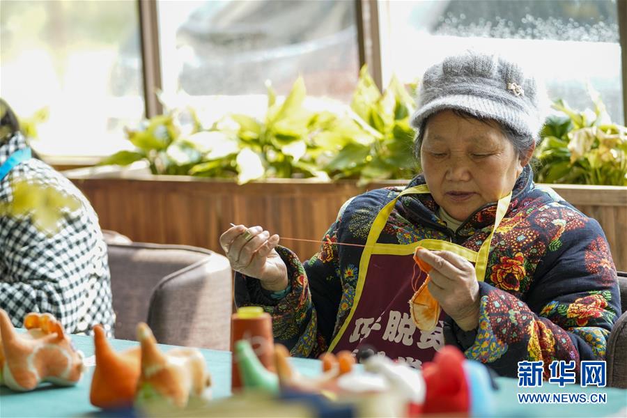 4月8日,在重慶石柱中益鄉(xiāng)巾幗扶貧工坊,當?shù)貗D女縫制土家族風情布老虎。近年來,重慶市石柱土家族自治縣中益鄉(xiāng)在重慶市婦聯(lián)的幫助下,以當?shù)胤沁z傳統(tǒng)技藝作為結合點,把扶貧與扶志、扶智相結合,通過引進外來文創(chuàng)企業(yè)對留守婦女、貧困及殘疾人群進行刺繡培訓,設立巾幗扶貧工坊等多種形式,幫助當?shù)卮迕駥崿F(xiàn)就業(yè)增收。據(jù)介紹,巾幗扶貧工坊運行以來,為當?shù)仃懤m(xù)開發(fā)出土家族布老虎、手提袋、餐墊繡邊、創(chuàng)意相框等一系列文創(chuàng)產(chǎn)品,幫助參加巾幗扶貧工坊的留守婦女和貧困村民實現(xiàn)月均增收近千元。新華社記者劉潺攝