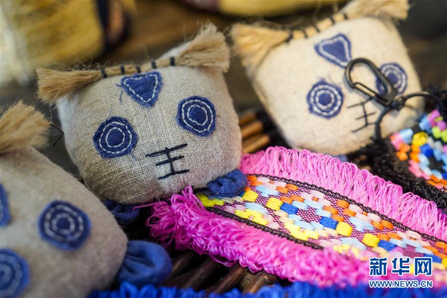 這是重慶石柱中益鄉(xiāng)巾幗扶貧工坊內(nèi)展示的當?shù)貗D女制作的土家族風情布老虎(4月8日攝)。近年來,重慶市石柱土家族自治縣中益鄉(xiāng)在重慶市婦聯(lián)的幫助下,以當?shù)胤沁z傳統(tǒng)技藝作為結合點,把扶貧與扶志、扶智相結合,通過引進外來文創(chuàng)企業(yè)對留守婦女、貧困及殘疾人群進行刺繡培訓,設立巾幗扶貧工坊等多種形式,幫助當?shù)卮迕駥崿F(xiàn)就業(yè)增收。據(jù)介紹,巾幗扶貧工坊運行以來,為當?shù)仃懤m(xù)開發(fā)出土家族布老虎、手提袋、餐墊繡邊、創(chuàng)意相框等一系列文創(chuàng)產(chǎn)品,幫助參加巾幗扶貧工坊的留守婦女和貧困村民實現(xiàn)月均增收近千元。新華社記者劉潺攝