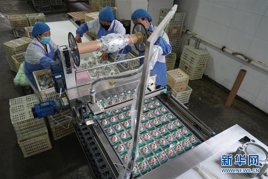 4月15日,在江蘇高郵鴨集團(tuán)生產(chǎn)車間,工人整理塑封包裝好的咸鴨蛋。“高郵鴨蛋”是江蘇高郵的特色農(nóng)業(yè)名片。近年來,當(dāng)?shù)卦诹挤N繁育、生態(tài)養(yǎng)殖、產(chǎn)品加工等方面加大力度,推動高郵鴨蛋品牌化建設(shè),讓小鴨蛋成為帶動農(nóng)戶致富的大產(chǎn)業(yè)。2019年,高郵市共計(jì)生產(chǎn)熟制鴨蛋產(chǎn)品近11.2億枚,年產(chǎn)值近17.68億元。新華社記者季春鵬攝