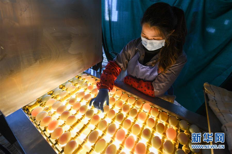 江蘇高郵鴨集團(tuán)的工作人員在生產(chǎn)線上對(duì)鴨蛋進(jìn)行光檢作業(yè)(4月15日攝)。“高郵鴨蛋”是江蘇高郵的特色農(nóng)業(yè)名片。近年來,當(dāng)?shù)卦诹挤N繁育、生態(tài)養(yǎng)殖、產(chǎn)品加工等方面加大力度,推動(dòng)高郵鴨蛋品牌化建設(shè),讓小鴨蛋成為帶動(dòng)農(nóng)戶致富的大產(chǎn)業(yè)。2019年,高郵市共計(jì)生產(chǎn)熟制鴨蛋產(chǎn)品近11.2億枚,年產(chǎn)值近17.68億元。新華社記者李博攝