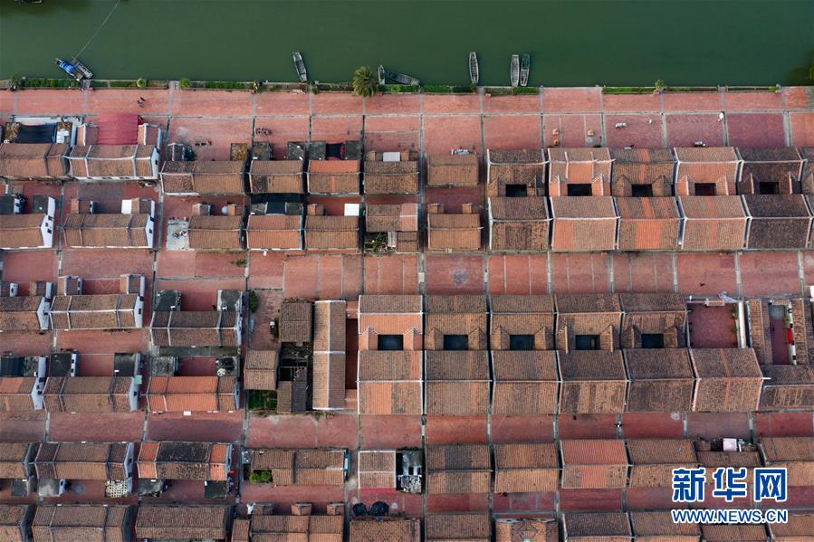 11月14日空中俯瞰閩南水上古村落——埭美村(無人機拍攝)。新華社記者姜克紅攝
