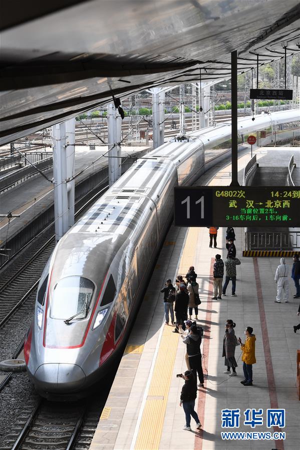 4月8日,G4802次列車(chē)駛?cè)氡本┪髡?。新華社記者鞠煥宗攝