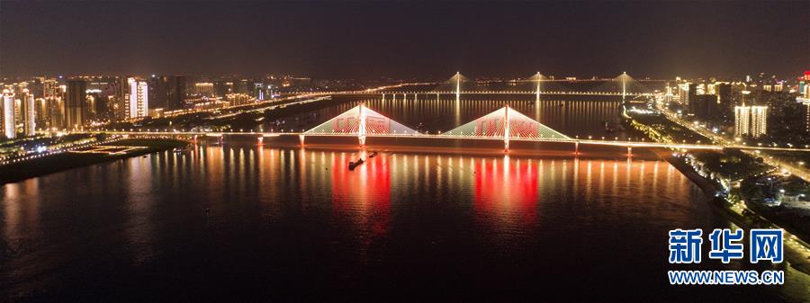 4月14日拍攝的武漢長江二橋附近夜景。新華社記者才揚(yáng)攝