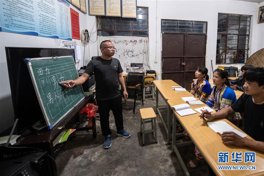 4月10日,在云南省勐海縣布朗山鄉(xiāng)曼囡村曼班三隊,娜四(左二)在村里上夜校。新華社記者胡超攝