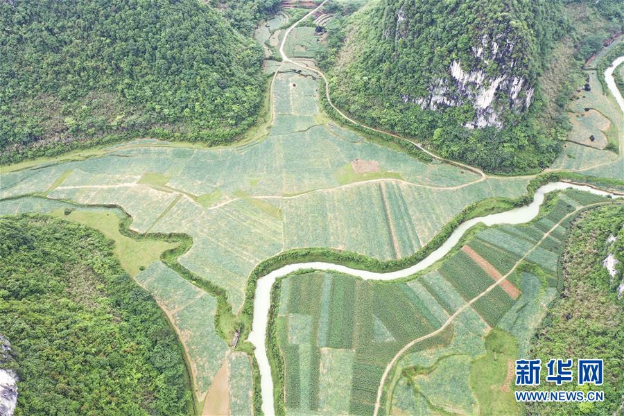 圖為廣西隆安縣南圩鎮(zhèn)田園景色(4月23日攝,無(wú)人機(jī)照片)。