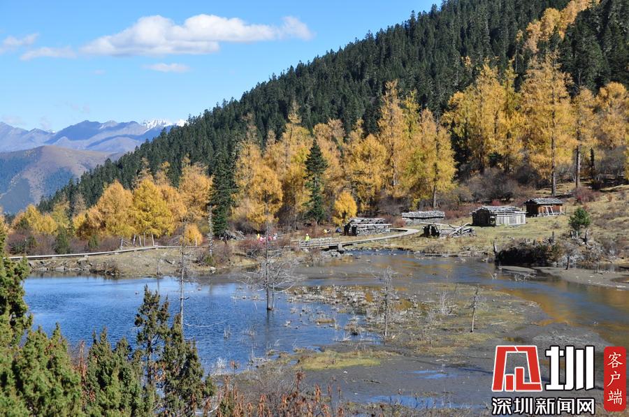 溝里有大片的落葉松、杜鵑和云杉林,雪山、海子、濕地、河流等景觀應(yīng)有盡有,唯獨沒有公路,只能沿木棧道徒步游覽。李仁奇攝