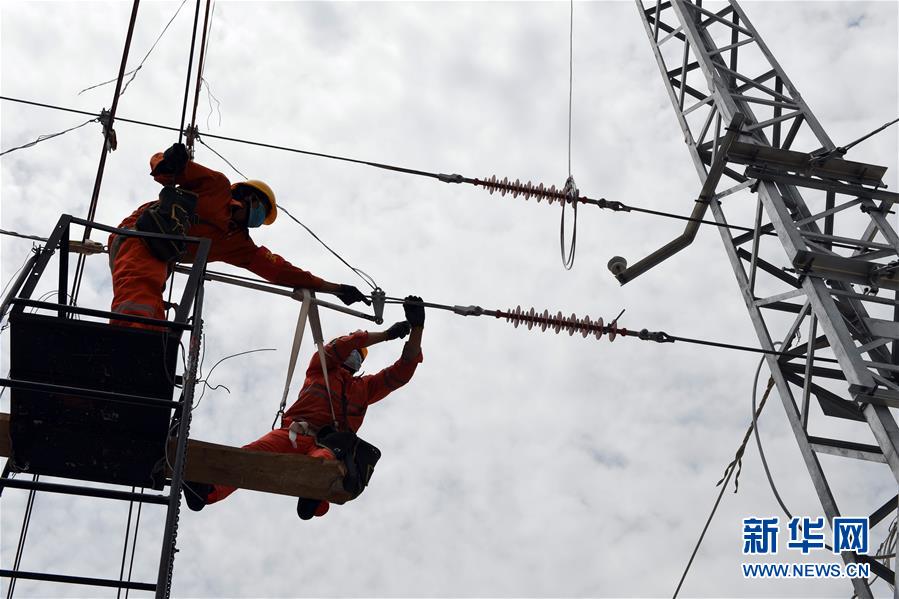 4月25日,在福建省寧德市屏南車站,施工人員開展接觸網(wǎng)調整作業(yè)。中鐵電氣化局集團上海公司推動衢寧鐵路福建段通信工程、信號工程、電力工程、電氣化工程各環(huán)節(jié)協(xié)同復工復產(chǎn),目前來自河北、河南、四川等國內(nèi)10個省的900多名員工返崗就業(yè)。衢寧鐵路北起浙江省衢州市,南至福建省寧德市,全長379.2公里。新華社記者彭張青攝