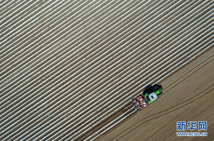 4月25日,灤南縣東黃坨鎮(zhèn)新戶村農(nóng)民使用拖拉機(jī)給準(zhǔn)備栽植煙薯秧苗的土地開溝覆膜(無(wú)人機(jī)照片)。近年來(lái),河北省灤南縣利用當(dāng)?shù)赝寥篮蜌夂蛱攸c(diǎn),引導(dǎo)農(nóng)民因地制宜發(fā)展煙薯種植,取得良好效果。目前該縣煙薯種植面積達(dá)3萬(wàn)多畝,每畝年收入達(dá)5000多元。新華社記者楊世堯攝