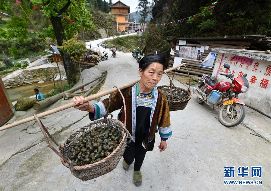 當(dāng)日,廣西融水苗族自治縣扶貧部門將11000斤螺苗送到桂黔烏英苗寨,免費(fèi)發(fā)放給34戶脫貧戶和貧困戶。烏英苗寨位于桂黔交界的大苗山深處,共有140戶600多人,其中100戶屬廣西柳州市融水苗族自治縣桿洞鄉(xiāng)黨鳩村,40戶屬貴州省從江縣翠里瑤族壯族鄉(xiāng)南岑村。這里交通不便,土地資源匱乏,自然環(huán)境惡劣,是一個(gè)貧困的苗寨。