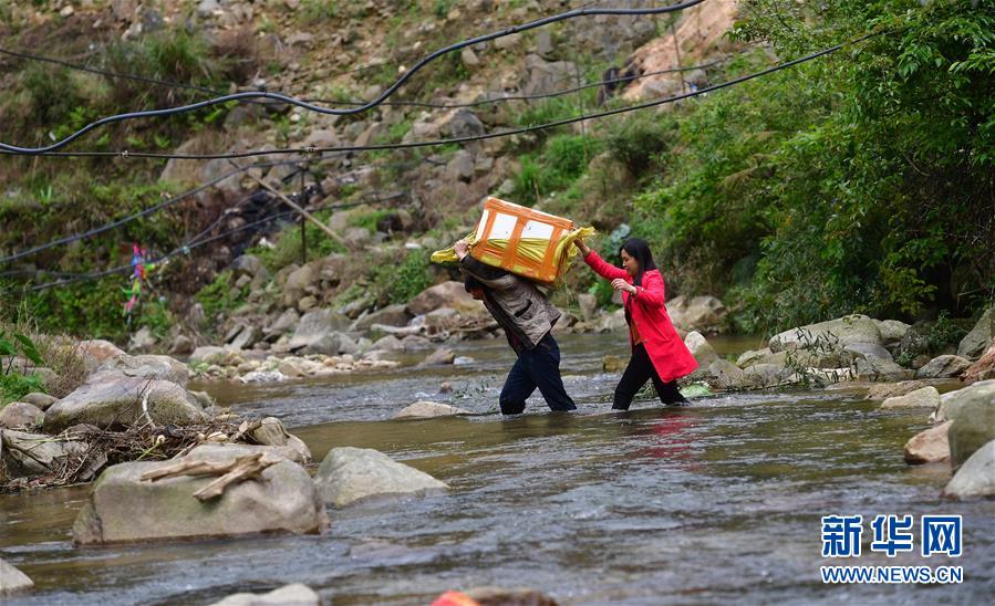 3月25日,在桂黔烏英苗寨,村民在搬運(yùn)螺苗,準(zhǔn)備投放。新華社記者黃孝邦攝
