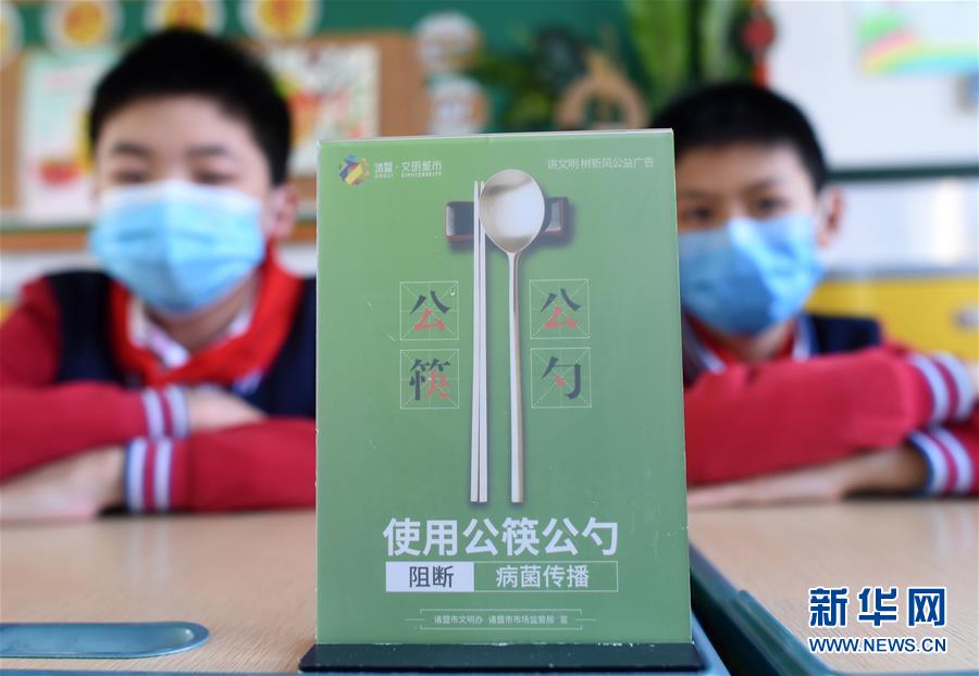 4月30日,諸暨市暨陽(yáng)小學(xué)五年級(jí)4班學(xué)生在主題班會(huì)中。當(dāng)日,浙江省諸暨市暨陽(yáng)小學(xué)五年級(jí)4班開(kāi)展“公筷公勺新家風(fēng)”主題班會(huì)活動(dòng),通過(guò)海報(bào)設(shè)計(jì)、情景劇表演等強(qiáng)化孩子們使用公筷公勺的意識(shí),倡導(dǎo)文明用餐。新華社記者 韓傳號(hào) 攝