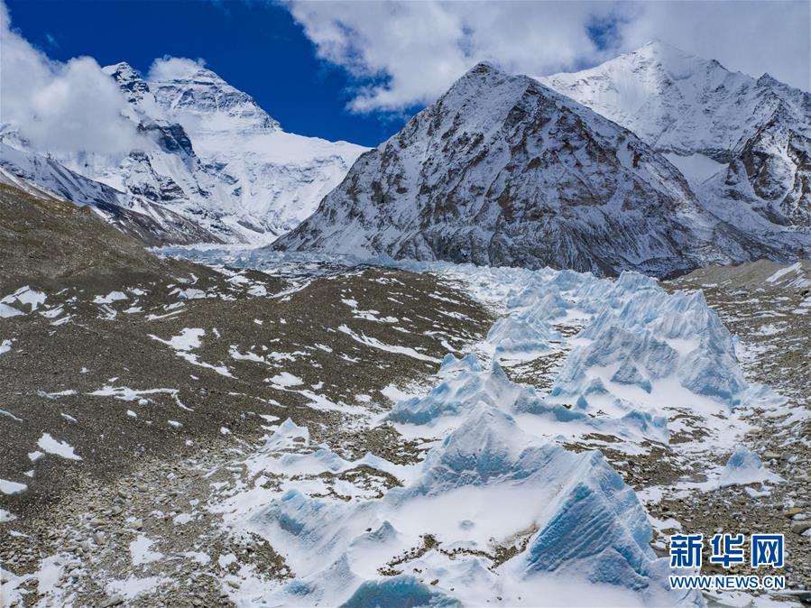 位于珠穆朗瑪峰腳下海拔5400米左右的中絨布冰川(4月30日攝,無人機照片)。位于珠穆朗瑪峰腳下海拔5400米左右的中絨布冰川,巍峨壯觀,冰塔林托起世界最高峰,讓人嘆為觀止。新華社記者普布扎西攝