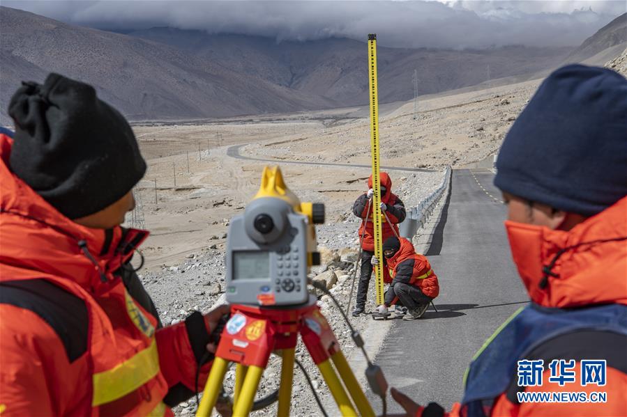 國(guó)測(cè)一大隊(duì)隊(duì)員在西藏定日縣曲當(dāng)鄉(xiāng)境內(nèi)進(jìn)行水準(zhǔn)測(cè)量(4月18日攝)。水準(zhǔn)測(cè)量是一種利用提供水平視線的儀器(如水準(zhǔn)儀、水準(zhǔn)標(biāo)尺),測(cè)定地面不同點(diǎn)之間的高差,并以此推算高度的一種方法,是經(jīng)典大地測(cè)量的重要技術(shù)之一。在目前正在進(jìn)行的2020珠峰高程測(cè)量中,部分國(guó)測(cè)一大隊(duì)隊(duì)員承擔(dān)了水準(zhǔn)測(cè)量的任務(wù)。新華社記者普布扎西攝