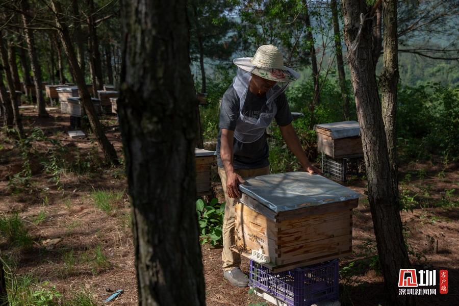 2020年5月3日,湖北省襄陽(yáng)市,在南漳三道河水庫(kù)小島上,小島養(yǎng)蜂人趙德海每天要巡視蜂箱,查看蜂箱的蜜蜂密集度和蜜蜂繁殖情況,及時(shí)調(diào)整,才能避免蜜蜂受損。