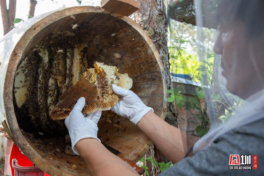 2020年5月3日,湖北省襄陽市,在南漳三道河水庫小島上,小島養(yǎng)蜂人趙德海正在采割蜂蜜。