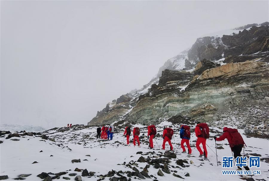 5月7日,2020珠峰高程測量登山隊(duì)前往海拔6500米的前進(jìn)營地。新華社特約記者拉巴攝