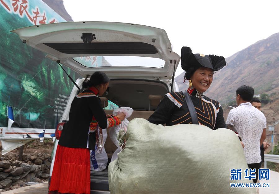 5月12日,四川省昭覺縣阿土列爾村第一批26戶貧困戶帶著家什陸續(xù)下山準備搬新家。新華社記者江宏景攝