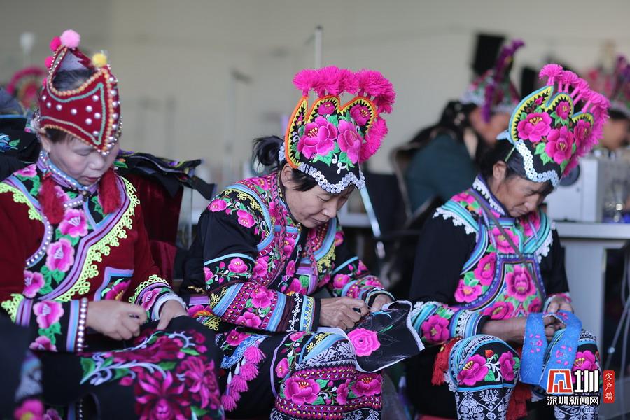 彝家公社簽約了七八千個繡娘,帶動近7000多個貧困家庭脫貧、致富。2020年初拍攝。