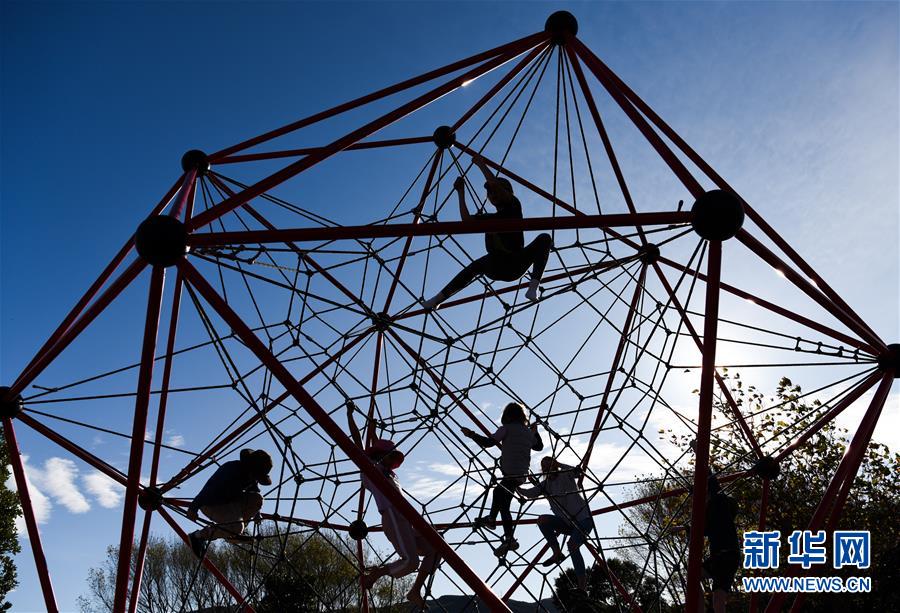 5月14日,孩子們在首都惠靈頓郊外公園的游樂場玩耍。當天是新西蘭從新冠疫情防控響應(yīng)三級下調(diào)到二級的第一天,經(jīng)濟活動全面重啟,公園等公共設(shè)施首次重新開放,中小學生將于5月18日全面返校復課。新華社記者郭磊攝