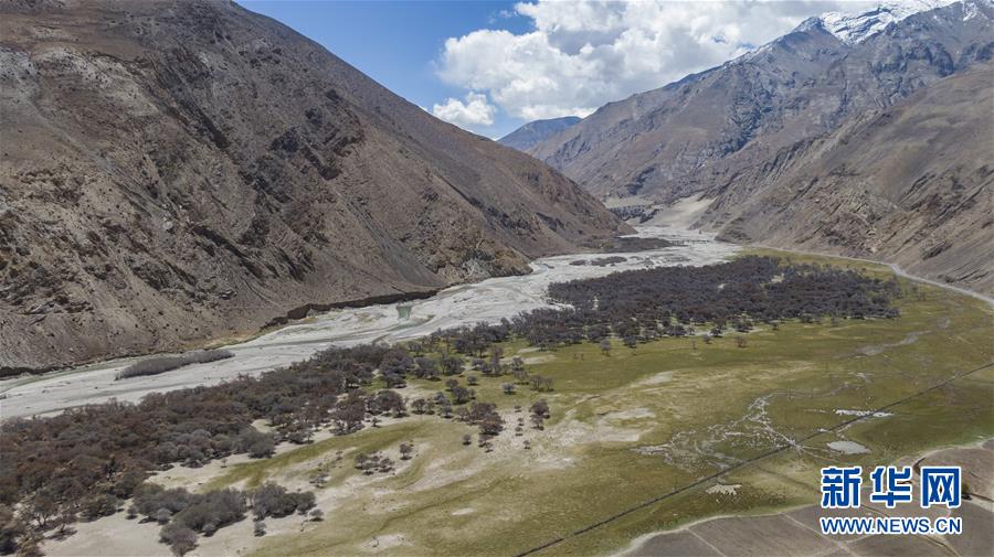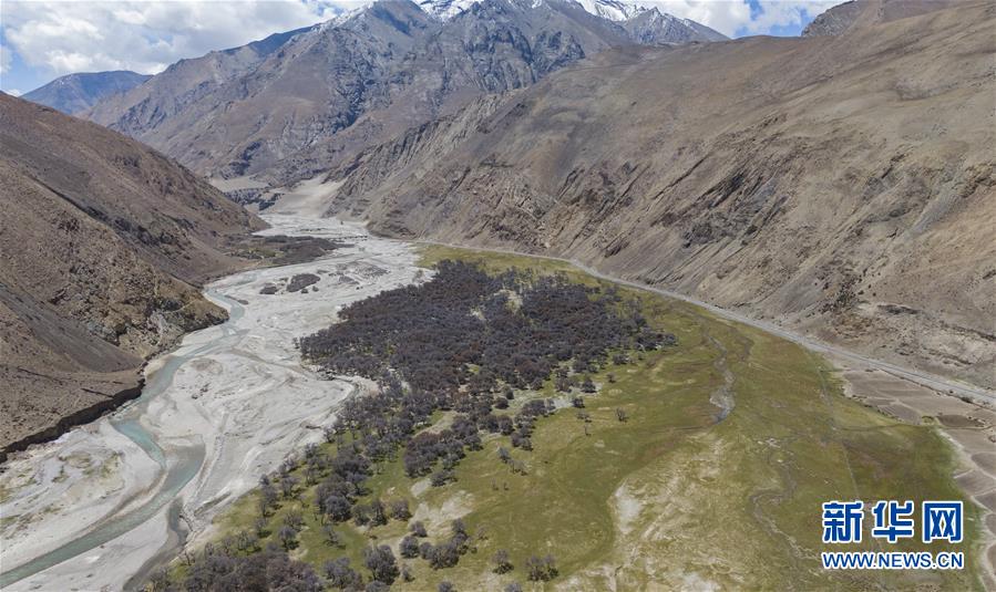 珠穆朗瑪峰國家級自然保護區(qū)內的沙棘林和濕地(5月16日攝,無人機照片)。新華社記者普布扎西攝
