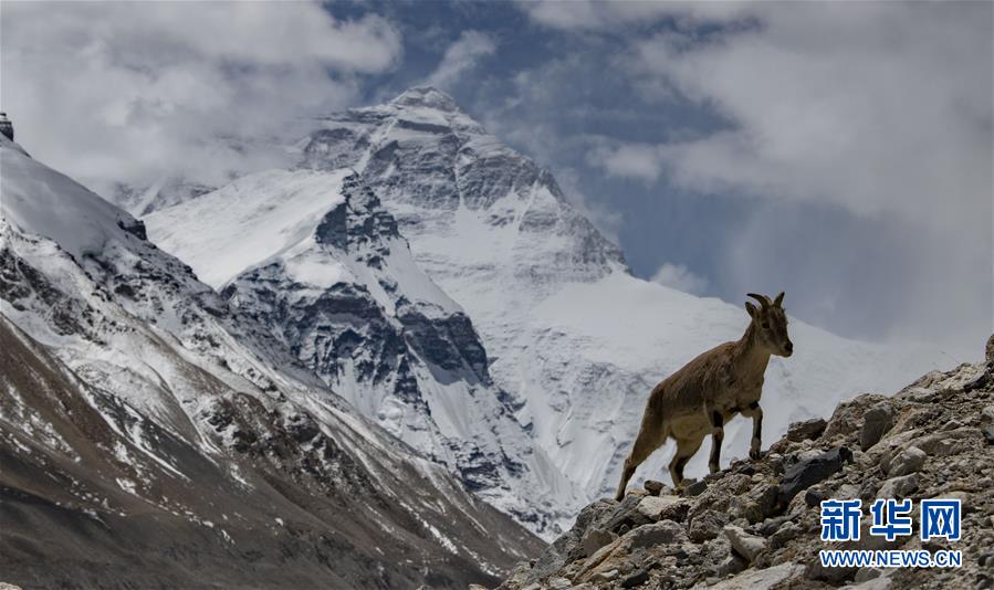 棲息在珠穆朗瑪峰國家級自然保護區(qū)內的巖羊(5月8日攝)。新華社記者晉美多吉攝