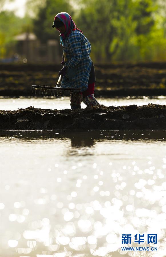 5月17日,在吉林省長春市雙陽區(qū)徐家村,農(nóng)民在水稻田間耕作。新華社記者許暢攝