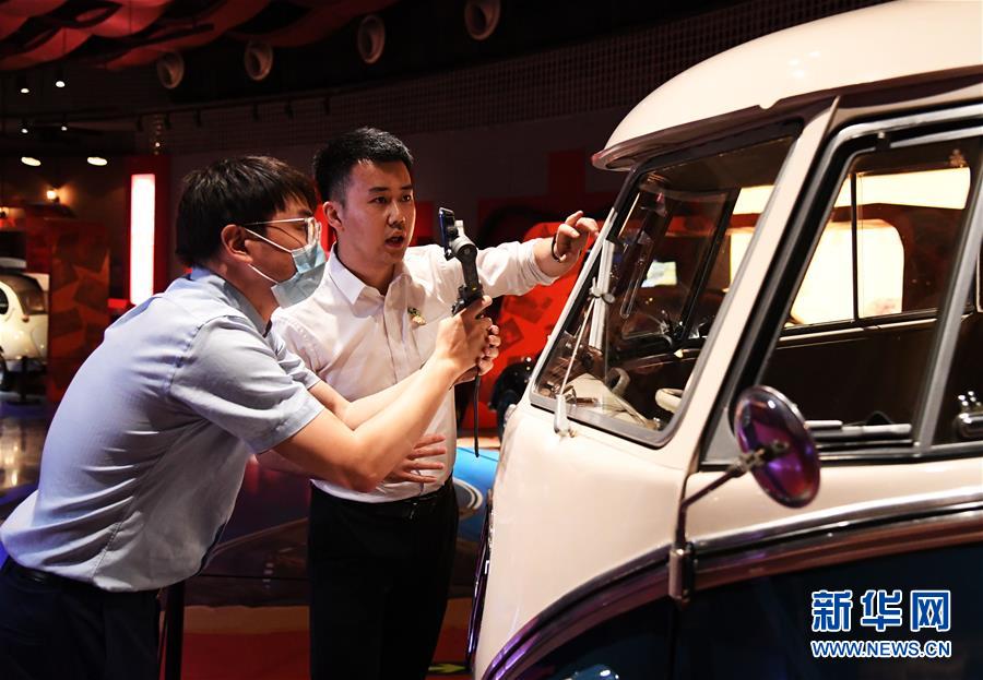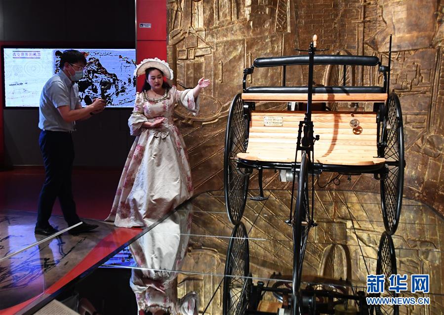 5月18日,在北京汽車博物館,工作人員(左)用講故事的方式通過網(wǎng)絡(luò)直播平臺介紹展品。當(dāng)日是國際博物館日,北京汽車博物館舉辦“帶你穿梭汽車時(shí)光”網(wǎng)絡(luò)直播活動,通過網(wǎng)絡(luò)直播平臺對博物館中的藏品車進(jìn)行展示和講解,讓網(wǎng)友足不出戶“云”游北京汽車博物館,了解汽車百年發(fā)展史,感受汽車文化魅力。新華社記者任超攝
