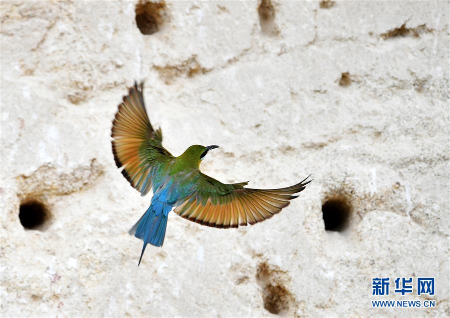 這是5月19日在廈門五緣灣栗喉蜂虎自然保護區(qū)拍攝的栗喉蜂虎。近日,大批栗喉蜂虎來到廈門五緣灣栗喉蜂虎自然保護區(qū)棲息、繁殖。新華社記者魏培全攝