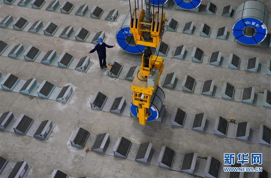5月22日,工人在遷安市首鋼遷鋼高端汽車板生產(chǎn)車間吊運(yùn)成品鋼卷。近日,首鋼股份公司遷安鋼鐵公司高端汽車板生產(chǎn)線項目在河北省遷安市投產(chǎn)。該項目具有技術(shù)水平領(lǐng)先、操作智能、節(jié)能環(huán)保等優(yōu)勢,酸洗板材年產(chǎn)量達(dá)100萬噸,產(chǎn)品主要應(yīng)用于高端汽車零部件生產(chǎn)及空調(diào)壓縮機(jī)用鋼和高強(qiáng)系列用鋼、精沖用鋼等多個領(lǐng)域。新華社記者 楊世堯 攝