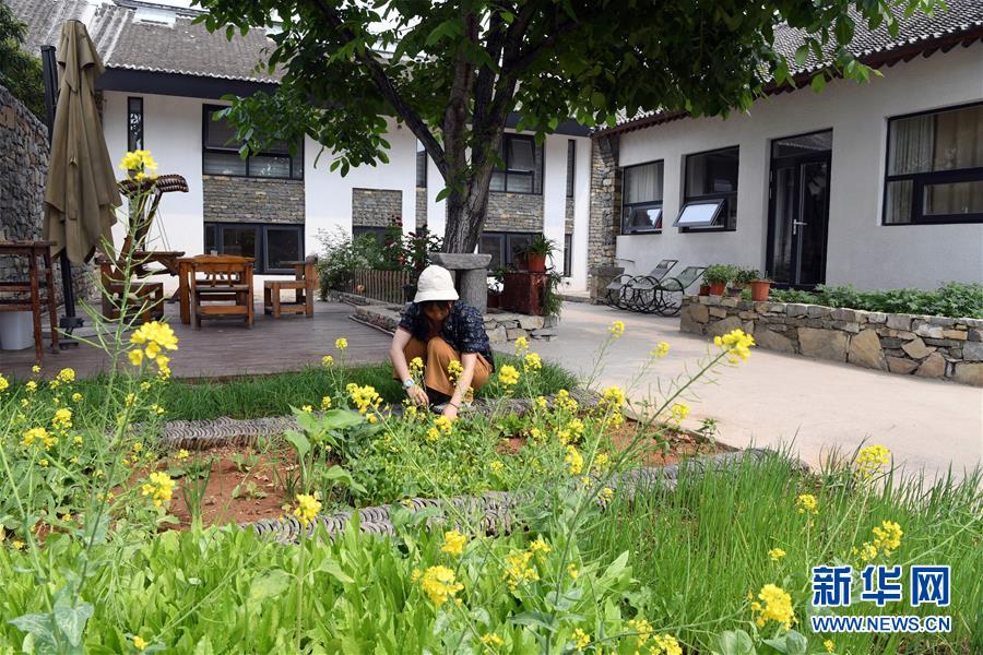 5月21日,在天津市薊州區(qū)漁陽鎮(zhèn)西井峪村的一處農(nóng)家院,游客采摘新鮮蔬菜。新華社記者 馬平 攝