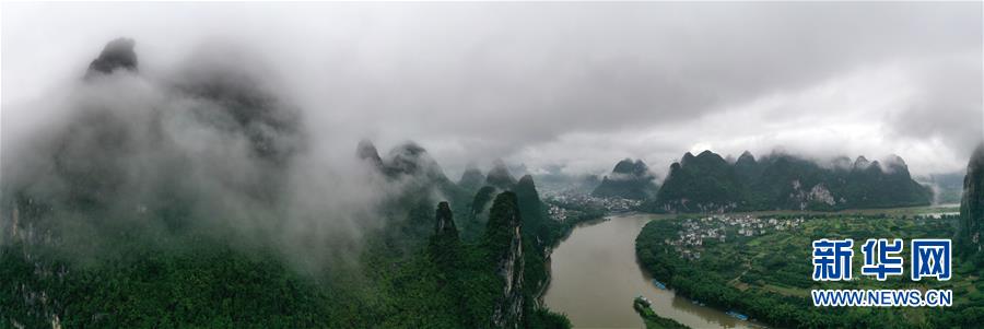 這是在廣西桂林市陽朔縣興坪鎮(zhèn)拍攝的山水風(fēng)光(5月21日攝,無人機(jī)全景照片)?!吧n蒼森八桂,茲地在湘南。江作青羅帶,山如碧玉篸……”一千多年前,唐朝詩人韓愈寫盡桂林山水之美。初夏時(shí)節(jié),在廣西桂林市陽朔縣興坪鎮(zhèn),藍(lán)天白云下,煙雨朦朧中,桂林山水盡顯秀美。新華社記者 周華 攝