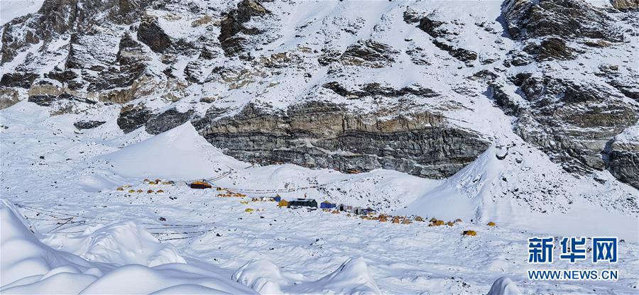 被大雪覆蓋的海拔6500米的珠峰前進營地(5月22日攝)。新華社記者晉美多吉攝