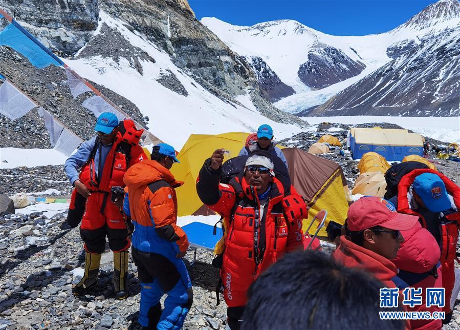 5月24日,2020珠峰高程測量登山隊部分人員從海拔6500米的前進營地出發(fā)。新華社特約記者拉巴攝
