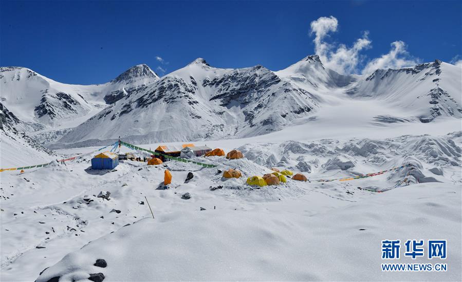 被大雪覆蓋的海拔6500米的珠峰前進營地(5月22日攝)。新華社記者晉美多吉攝