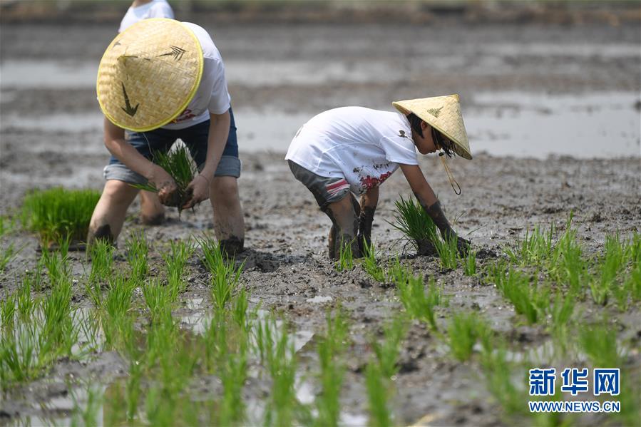 5月24日,小朋友與家長在稻田里參加親子插秧比賽。當日,十余名小朋友在家長的帶領下來到浙江省湖州市吳興區(qū)八里店鎮(zhèn)尹家圩糧油植保農(nóng)機專業(yè)合作社的稻田中,參加親子插秧、稻田捉魚等農(nóng)事體驗活動。新華社記者黃宗治攝
